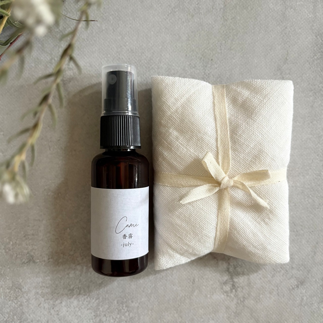 ムスビ舎がお届けする、月替わりのアロマミストと香りのサシェ。