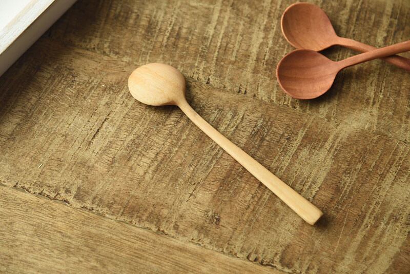 サオの木というインドネシアの果物の木でできていて、木目が大変美しく、ベージュ〜赤のグラデーションがあります。