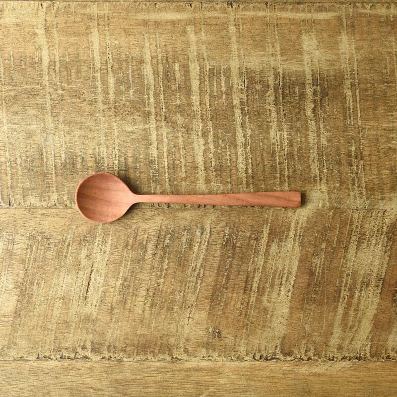 サオの木というインドネシアの果物の木でできていて、木目が大変美しく、ベージュ〜赤のグラデーションがあります。
